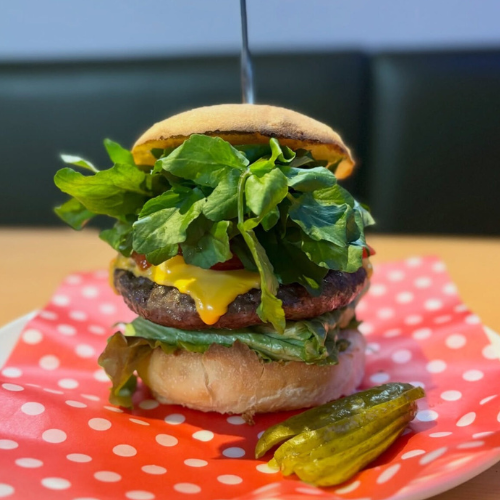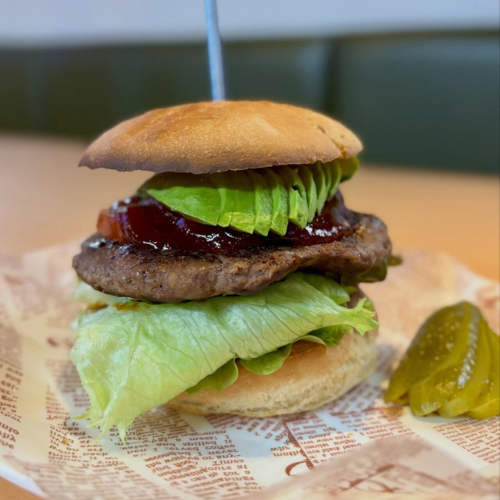牛100%の肉厚パティは、ひと口目からしっかり満足感。